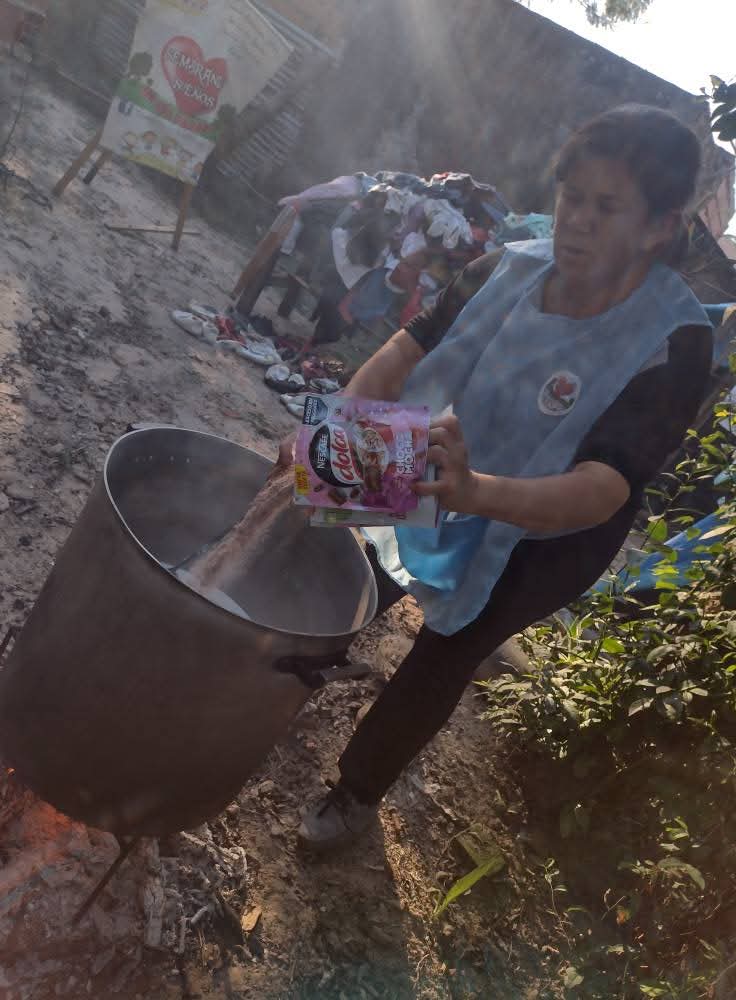 «Hoy por hoy hacemos 100 litros de leche o chocolate. Las familias retiran para consumir en sus casas, sobre todo en esta época de frío», detalló. Además de la merienda, cuando reciben suficientes donaciones, cocinan ollas populares con guisos, arroz con pollo, locro o polenta.