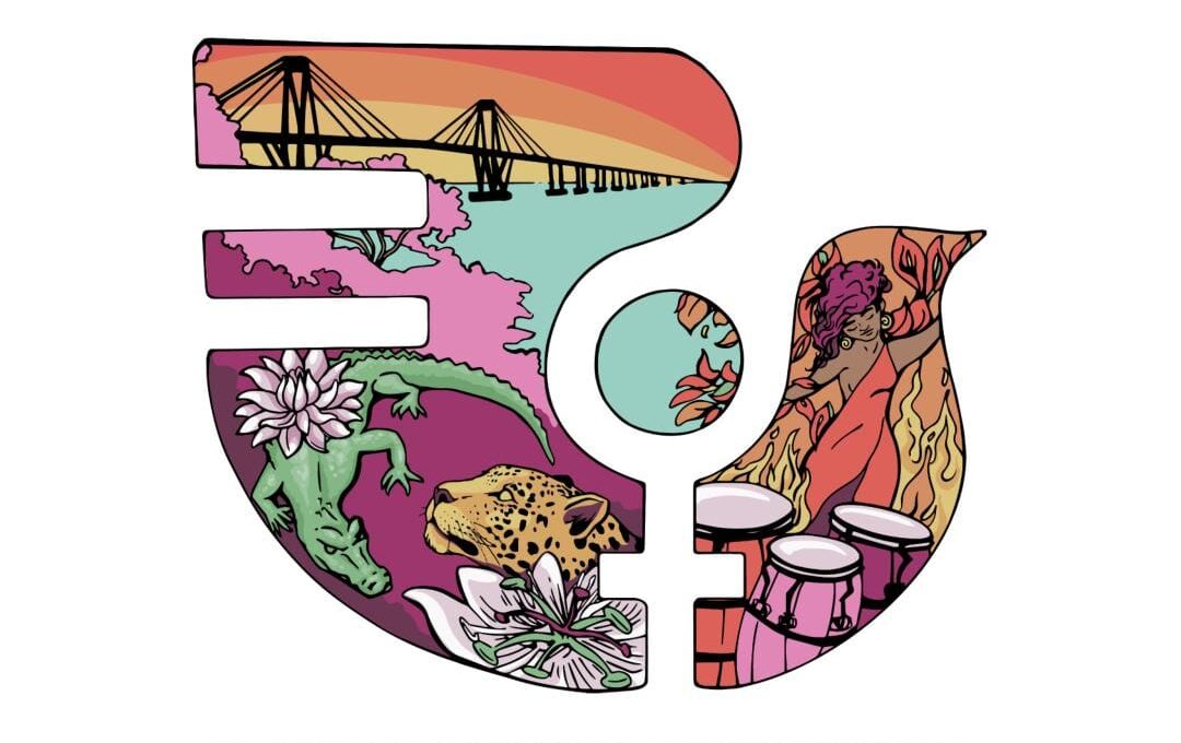 Alrededor de la paloma, figura principal del encuentro, se despliegan elementos que dialogan con el entorno natural y cultural de Corrientes: lapachos en flor, animales autóctonos como yacaré y yaguareté (reinterpretados con colores ligados a las luchas feministas), y flores como Mburucuyá, Irupé y Ceibo, que llevan los nombres de las mujeres del linaje materno de une de les diseñadores.
